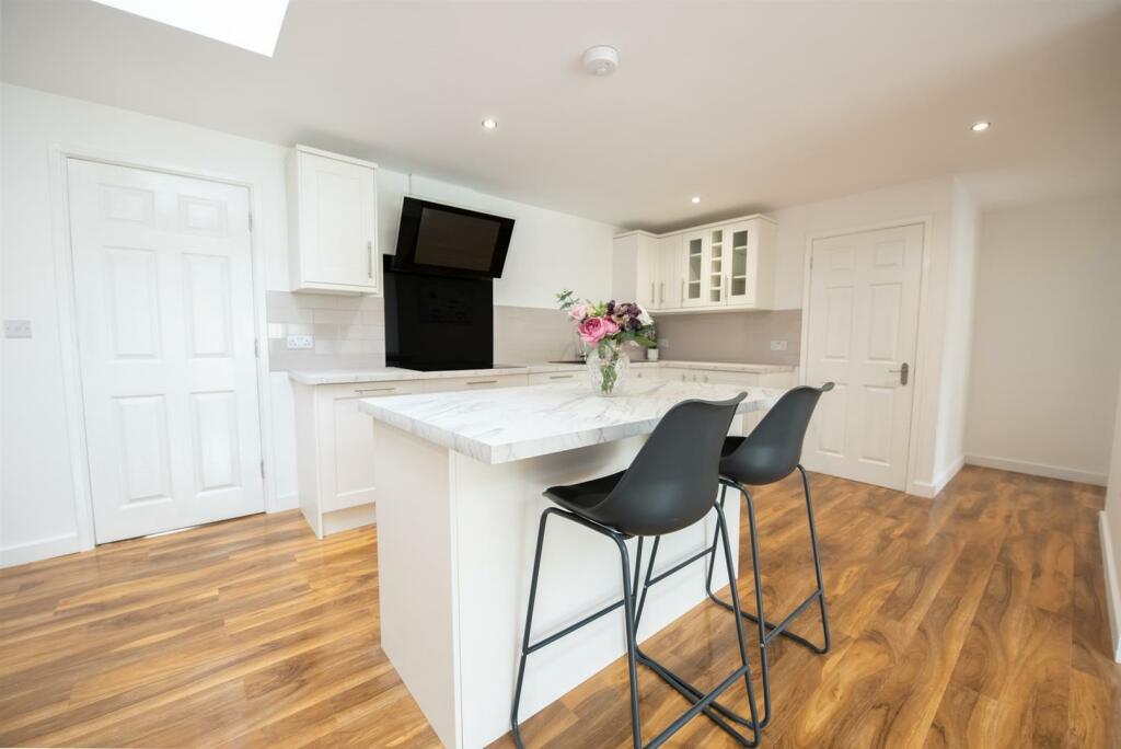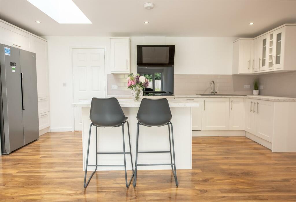 •Dual Kitchens & Three Reception Rooms: The heart of the home is the beautifully designed open-plan kitchen, featuring a central island for entertainment, sleek new appliances, and an expansive roof that floods the space with natural light. French doors open onto the garden, creating a seamless indoor-outdoor flow. The second kitchen and multiple reception rooms offer endless possibilities for entertaining, separate living quarters, or a home office setup.